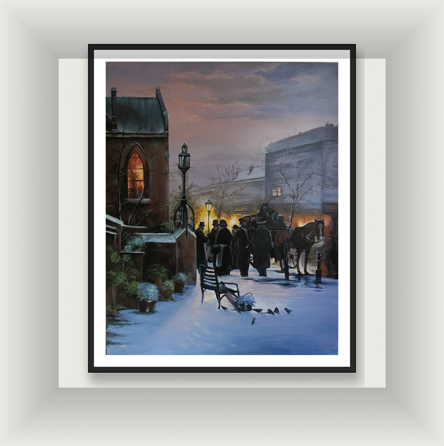 Bu tablo, sadece bir manzara değil; içinde kaybolabileceğiniz bir hikaye anlatıyor. Kar üzerindeki ayak seslerini ve atlı arabaların tıkırtısını duyabileceğiniz kadar canlı olan bu eser, mekanınıza klasik bir Avrupa asaletini ve kış akşamlarının o huzurlu melankolisini taşıyacak. Zamansız bir zarafeti duvarında görmek isteyenler için eşsiz bir parça.
