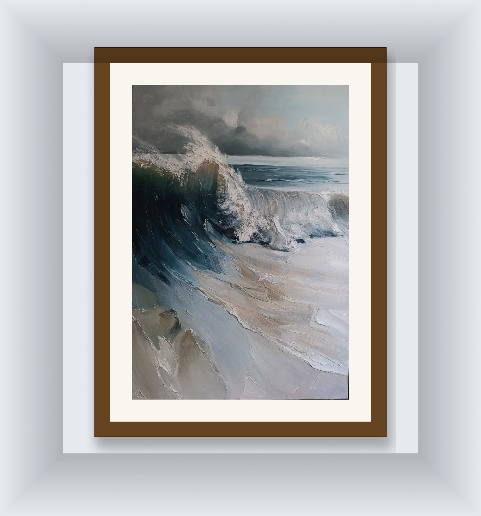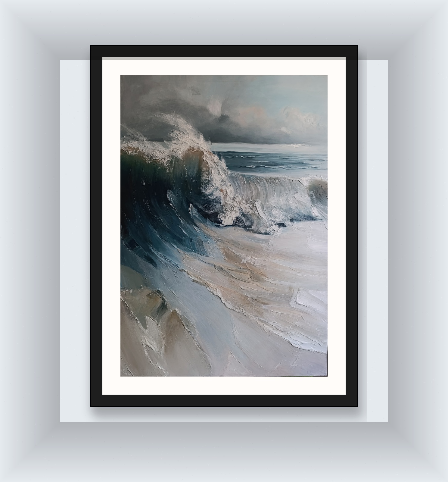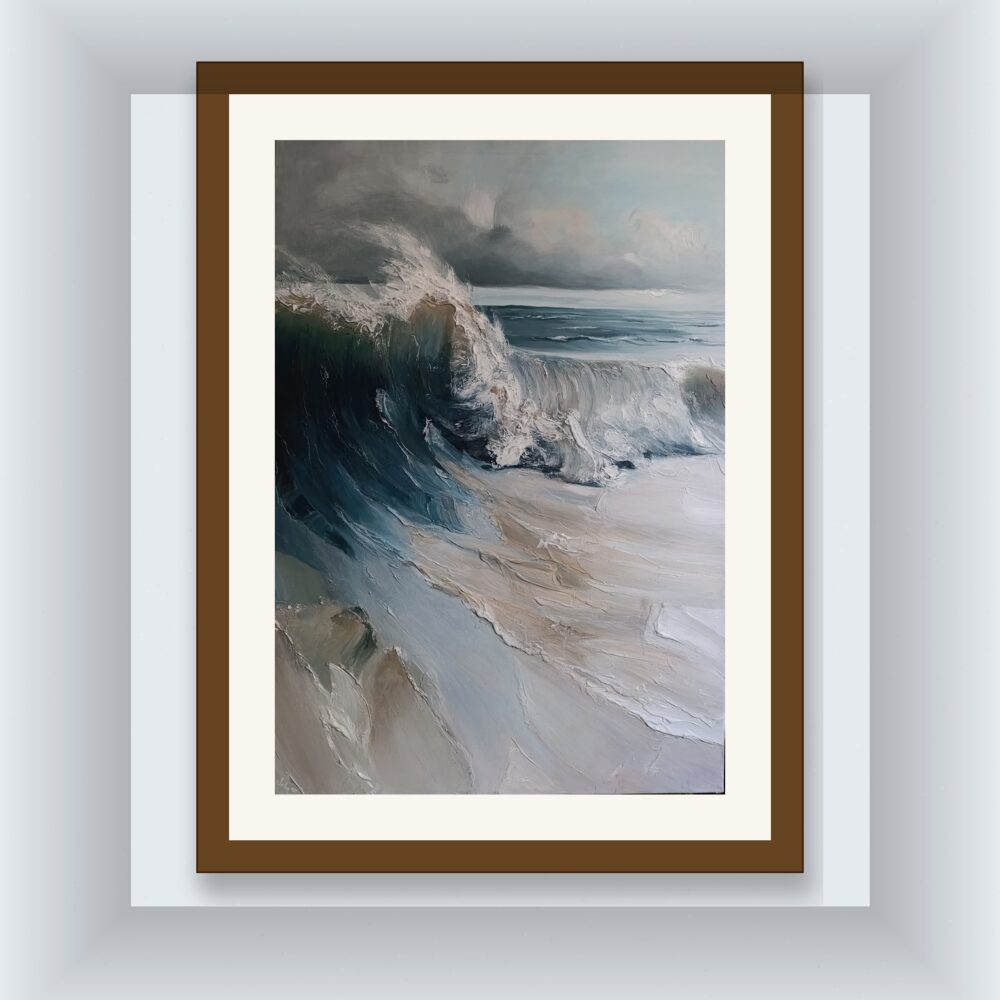 Bu tablo statik bir sanat eseri değil, duvarınızda sürekli hareket eden bir doğa olayı. Sanatçının boyayı cesurca yığarak oluşturduğu bu dokular, ışığın açısına göre gün boyu farklı gölgeler ve parıltılar sunacak. Evinizde modern, güçlü ve prestijli bir odak noktası arıyorsanız, bu dalgaların sesine kulak vermelisiniz.