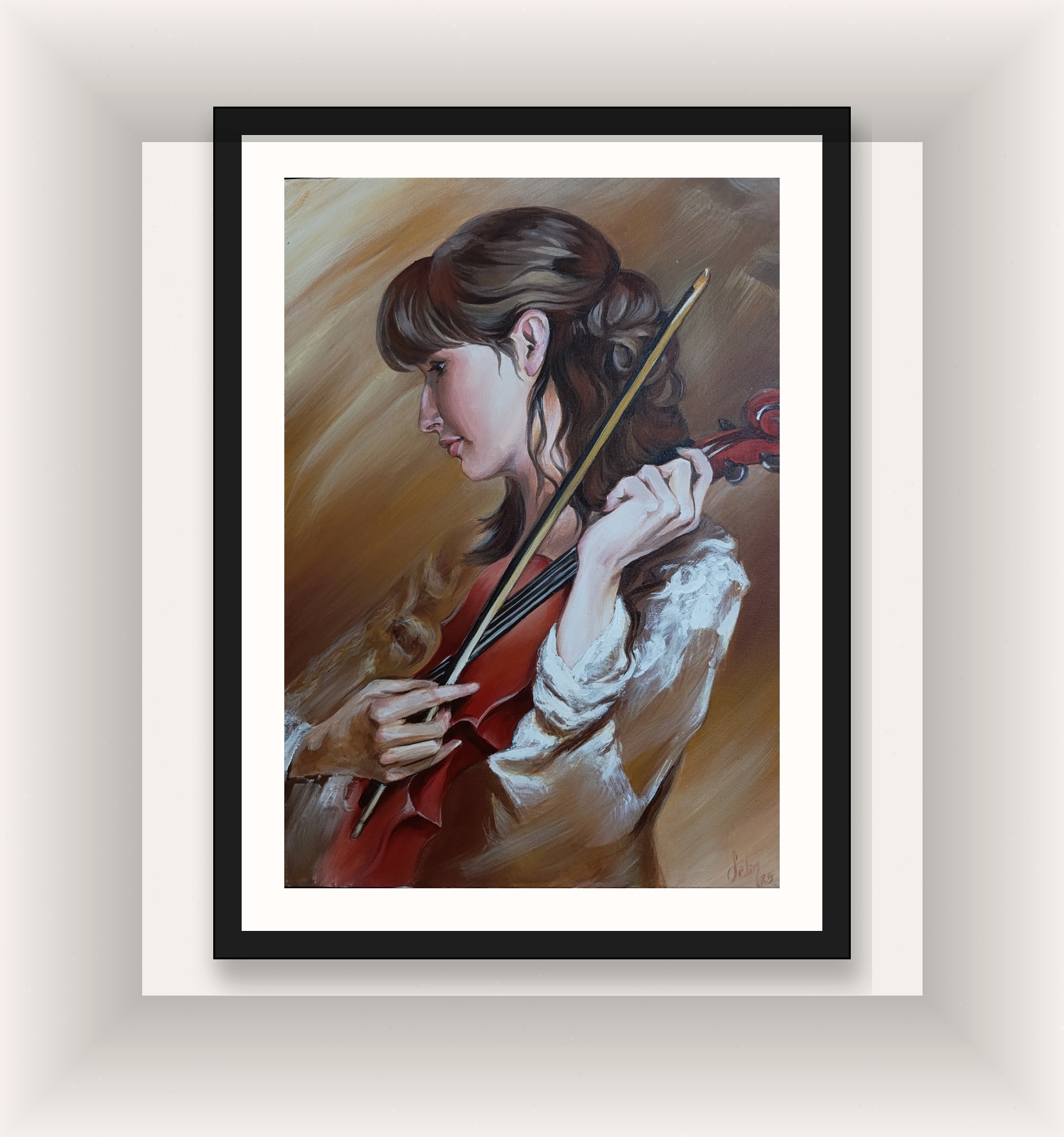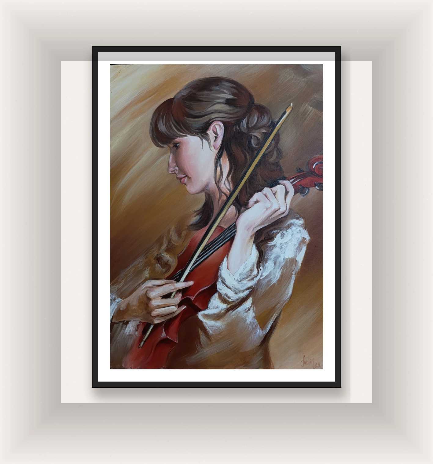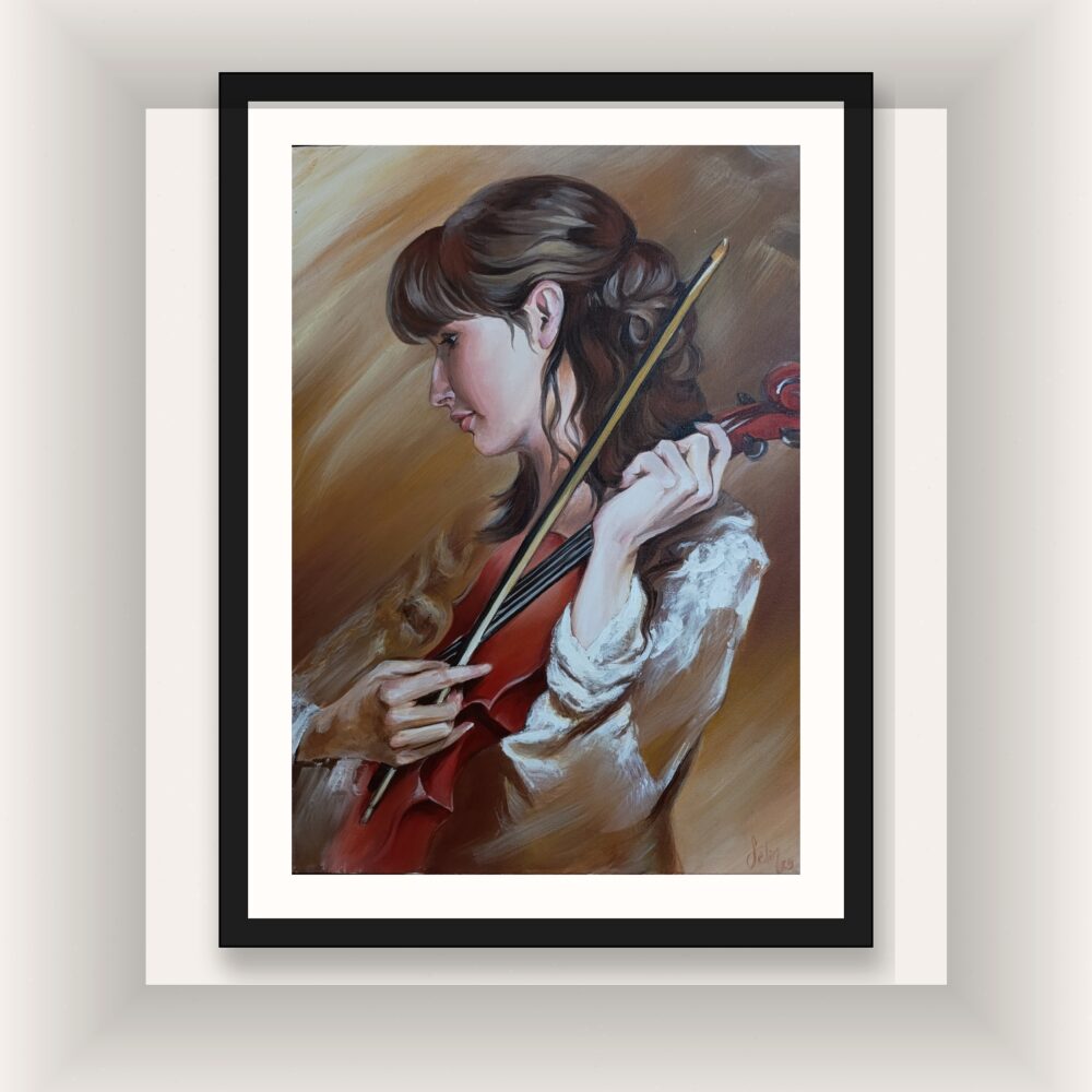 Bazı tablolar sadece bakmak içindir, bazıları ise dinlemek için. Bu eser, baktığınız her an size en sevdiğiniz konçertoyu fısıldayacak kadar duygu dolu. Evinizin en dingin köşesinde, sadece görsel bir zenginlik değil, aynı zamanda ruhsal bir huzur kaynağı arıyorsanız; bu kemancı kızın hikayesi sizinle başlamalı.