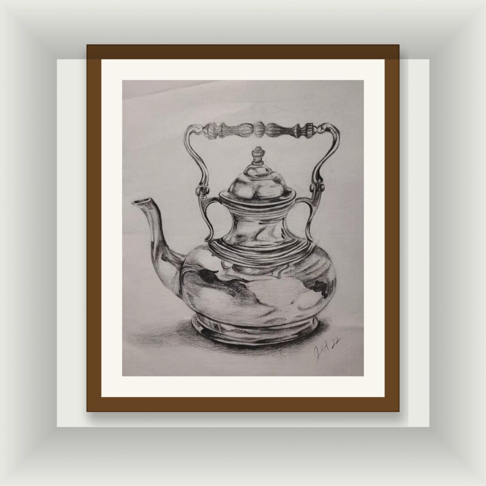 ✨ Öne Çıkan Özellikler: Metal yüzey yansımaları, zarif kıvrımlar ve süslemeler, ustaca gölgelendirme teknikleri. Klasik sanat eğitiminin mükemmel bir örneği.
