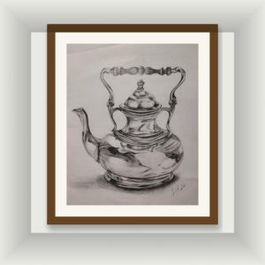 Geleneksel zarafeti sanatla yakalayın! Osmanlı ve klasik dönemleri anımsatan bu görkemli gümüş çaydanlık çizimi, detaylı metal yansımalarıyla göz kamaştırıyor. Türk kahve kültürü ve antika severlerin vazgeçilmez tercihi.